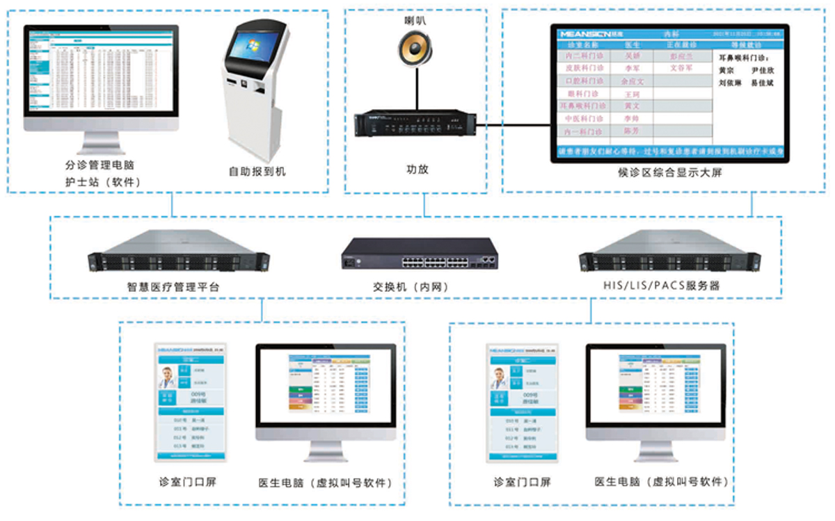 智慧醫(yī)療排隊(duì)叫號(hào)系統(tǒng),包括門(mén)診排隊(duì)叫號(hào)系統(tǒng)、藥房排隊(duì)叫號(hào)系統(tǒng)、醫(yī)技排隊(duì)叫號(hào)系統(tǒng)、體檢中心排隊(duì)叫號(hào)系統(tǒng)、預(yù)防接種中心排隊(duì)叫號(hào)系統(tǒng)等產(chǎn)品,在結(jié)合醫(yī)院現(xiàn)狀的情況下,結(jié)合醫(yī)院實(shí)際需求定制開(kāi)發(fā)的一整套醫(yī)院排隊(duì)解決方案,主要用途是幫助醫(yī)院提高服務(wù)效率,減少患者排隊(duì)等候時(shí)間,在與HIS/PACS/LIS等醫(yī)院管理系統(tǒng)對(duì)接的情況下,做到精準(zhǔn)的患者分流。